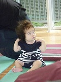ママのおひざでお座りするのが大好きな、アカリちゃん