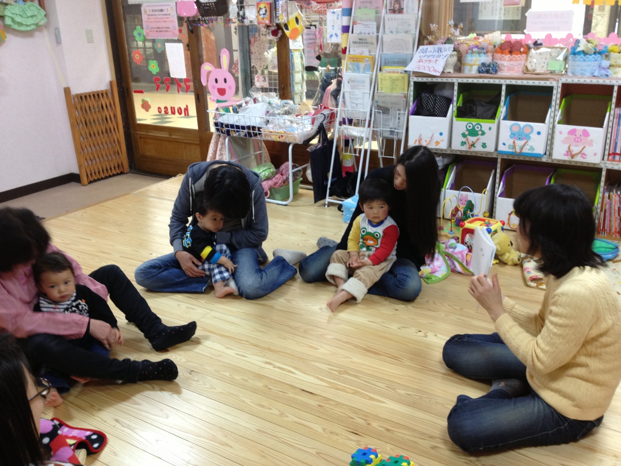 ほっこりタイム(4/23) 公開済み: 2013年4月23日更新: 2017年2月15日作成者: maymamaカテゴリー: マイママ, マイママBLOG 毎月第4火曜日に保育士の先生に手遊びや歌、絵本の読みきかせをしていただいています。 今日は「いないいないばあはだれでしょうね」 「むすんでひらいて」 などで一緒に遊んで、 「だるまさんが」という絵本を読んでいただきました。 子ども達も興味しんしん、ママもほっこり楽しい時間を過ごしました☆