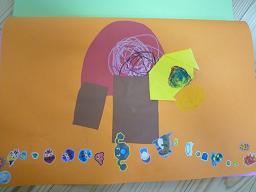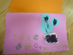 ねずみのおいも掘りの作品作りで、キッチンペーパーでおいもを作って、絵具で色付けしました。