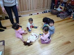 今日のマイママ 公開済み: 2014年1月23日更新: 2017年2月15日作成者: maymamaカテゴリー: にじ組, マイママ, マイママBLOG 今日は調理実習をしました。 ママたちが、調理している間、赤ちゃんたちは、お昼寝をしたり、遊んだりして、ご飯ができるのを待っていました。 赤ちゃんたちはよくわかっているようで、ご飯が出来上がるころ いい匂いに誘われ、お腹もすいてきて、グズグズ・・・ ちゃんと「いただきます」をして、みんなでおいしくいただきました。 そして、食後はみんなで楽しく遊んでいました。