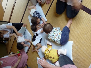 今日は、赤ちゃん体操をしましたが、この月齢になると少しくらい身体を動かしても